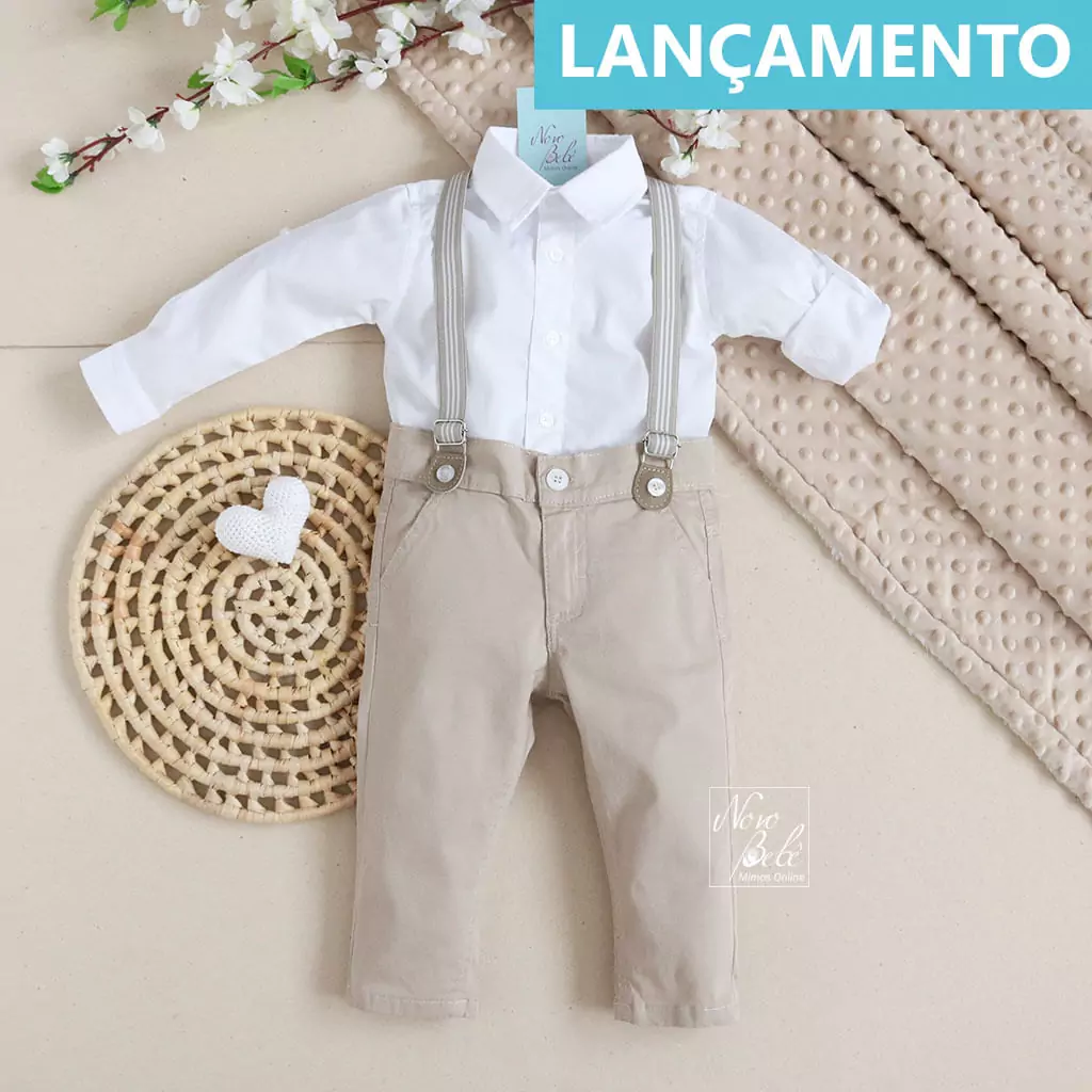 Conjunto batizado com Camisa, Calça e supensório, bem confortável para o seu pequeno.