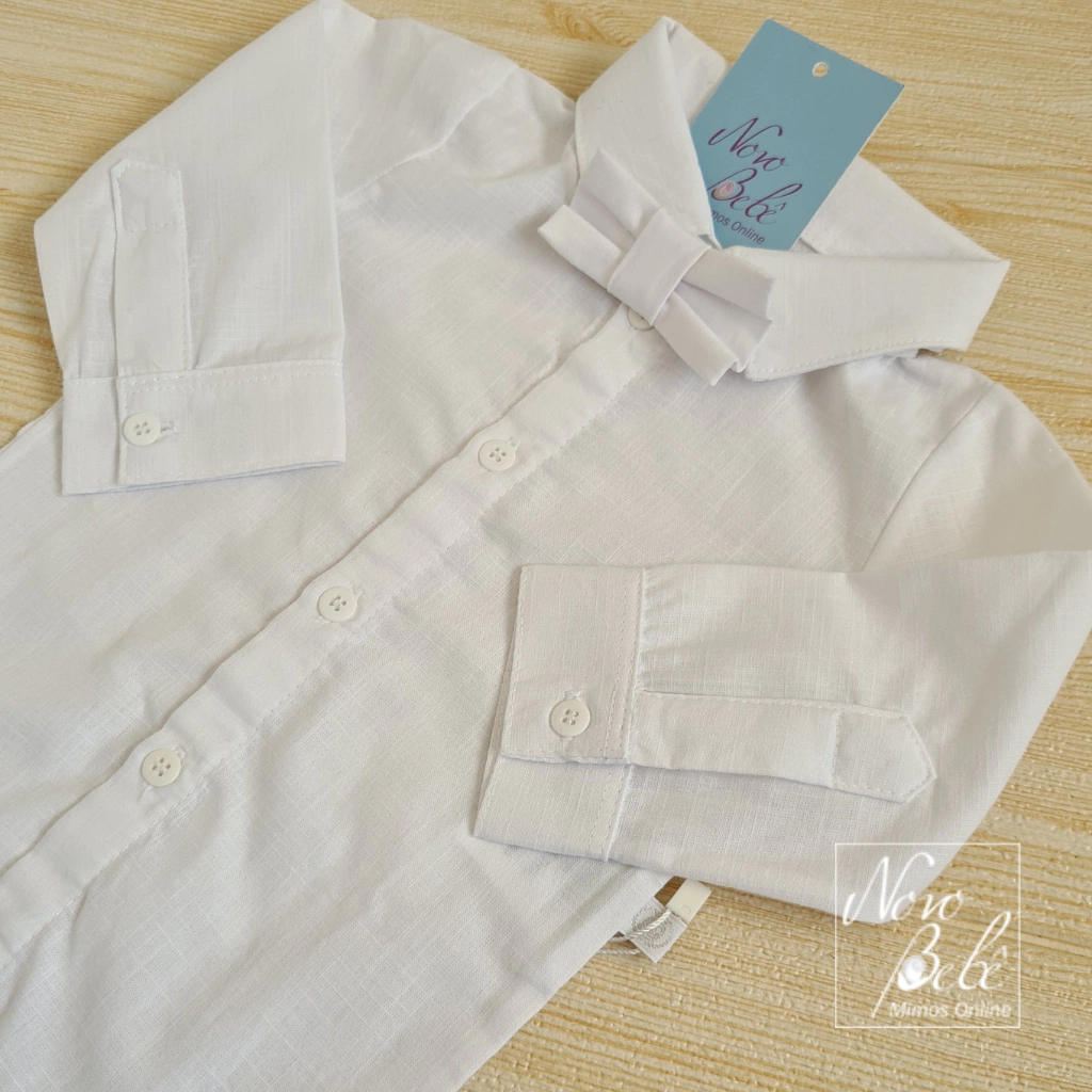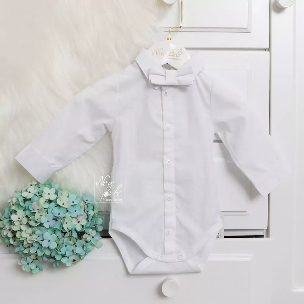 1 Body camisa em tecido tricoline, manga longa, para manter os bracinhos aquecidos.