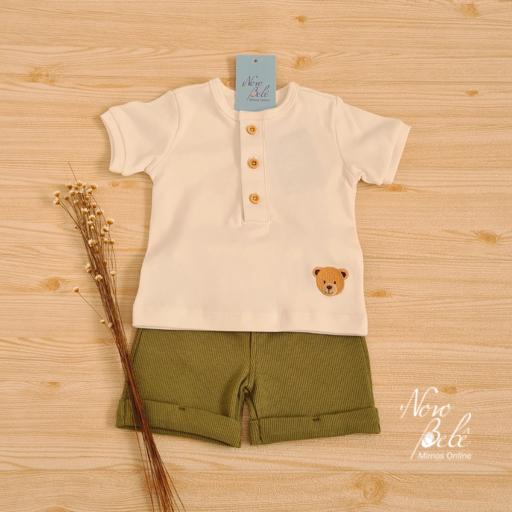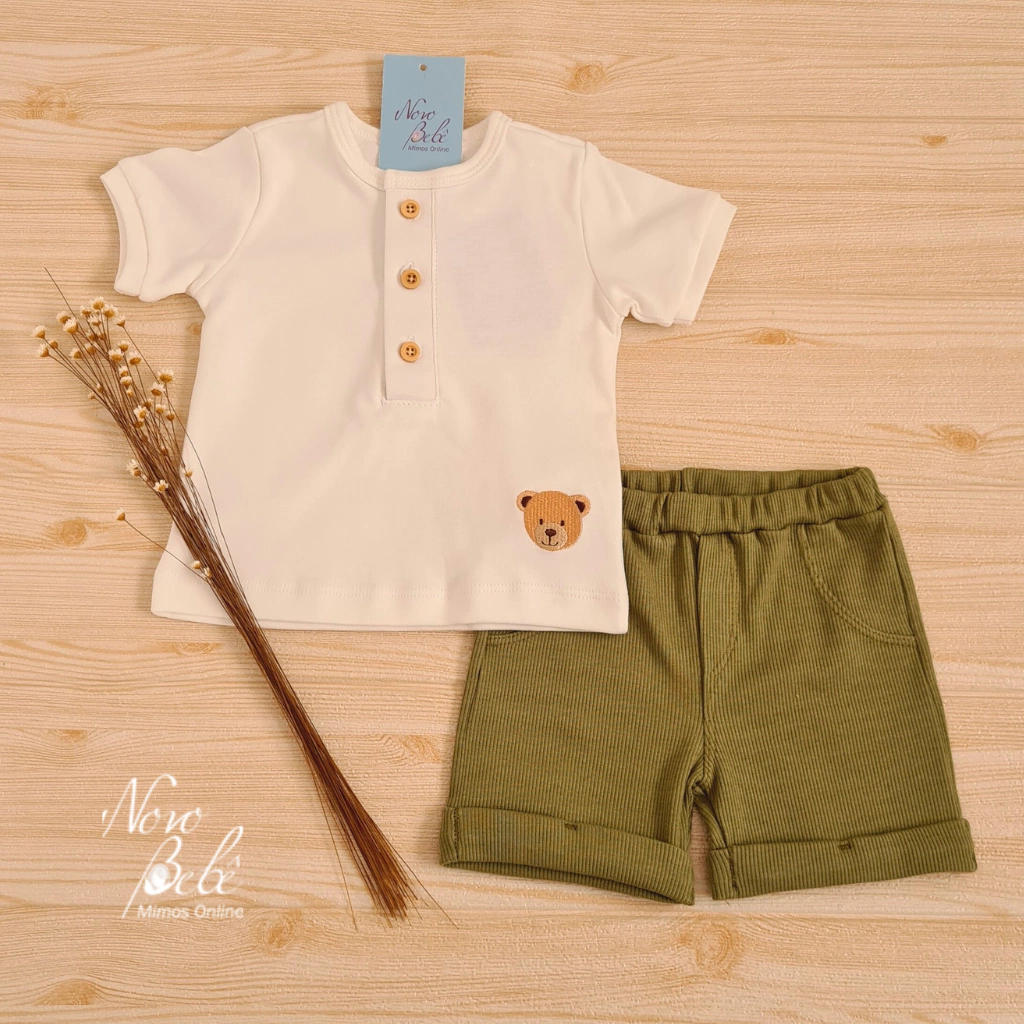 Conjunto de bebê, menino, com Blusa e Shorts, com toque extremamente suave e macio, perfeito para seu pequeno vestir em ocasiões especiais, até mesmo o Natal.