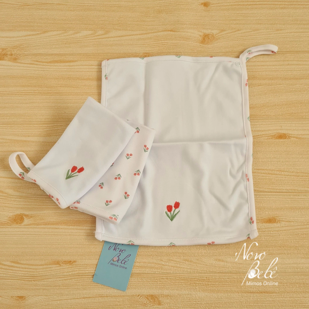 1 Fraldinha estampada de Tulipa, com prendedor de chupeta em detalhe.