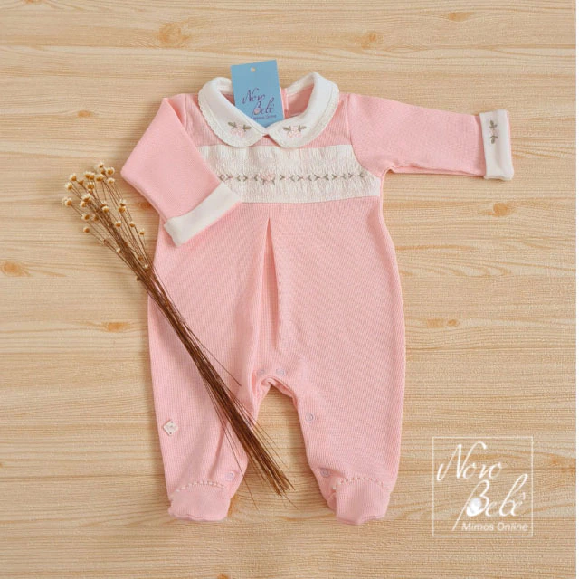 Detalhe com pregas e bordado de flores,com lindas pérolas, para deixar o modelito gracioso, do jeitinho que o seu pacotinho de amor merece!