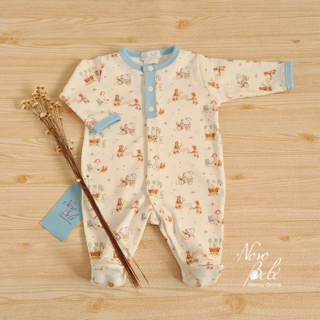 Macacão de bebê menino em algodão egípcio, um dos dois melhores algodões do mundo. Com toque extremamente suave e macio, perfeito para abraçar a pele do seu bebê nos primeiros meses de vida.