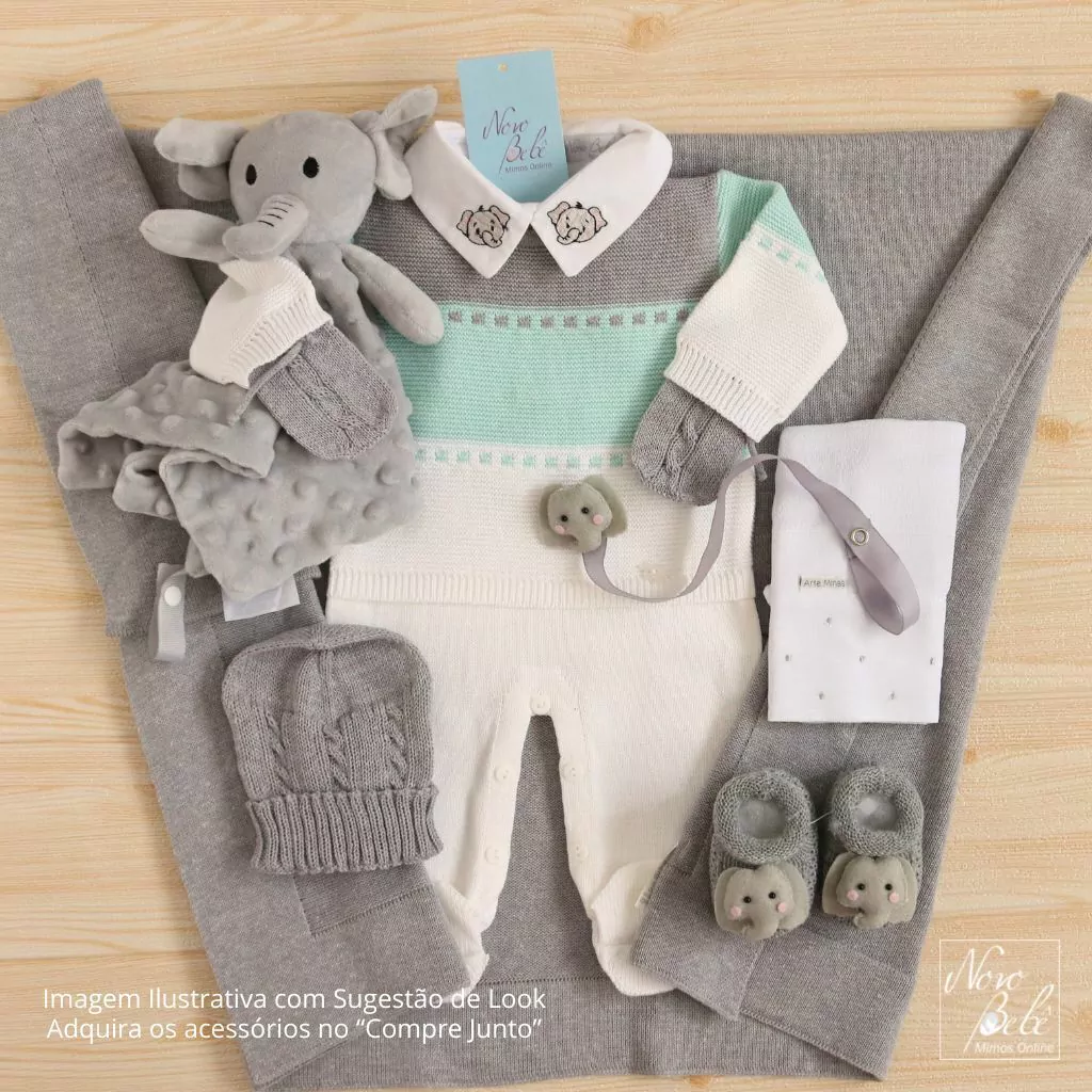 Kit de saída de maternidade masculina com 3 Peças (Macacão, Body e Manta).