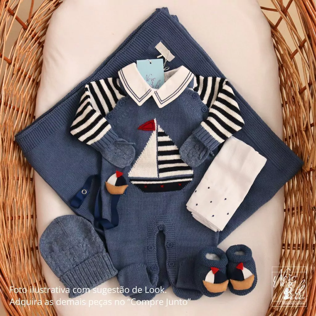 Kit de saída de maternidade masculina com 3 Peças (Macacão, Body e Manta).