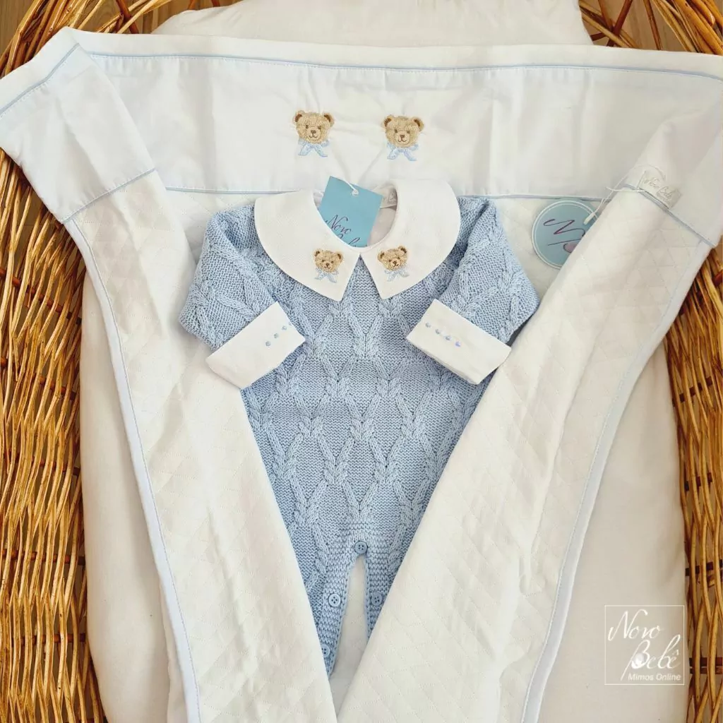 Kit de saída de maternidade masculina com 3 Peças (Macacão, Body e Manta).