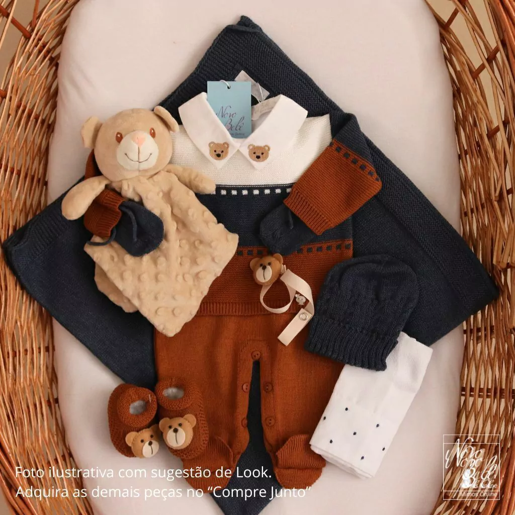 Kit de saída de maternidade masculina com 3 Peças (Macacão, Body e Manta).