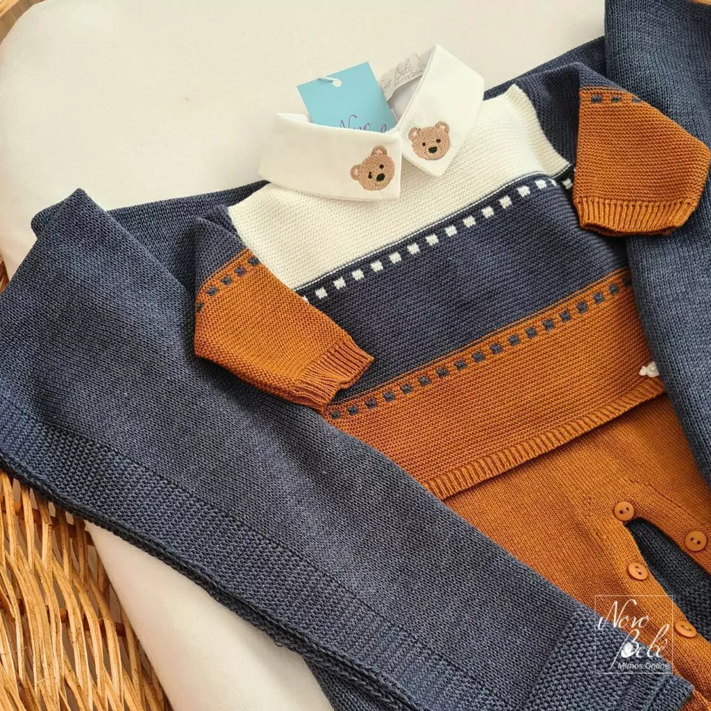 Macacão masculino de tricot com detalhe listrado.