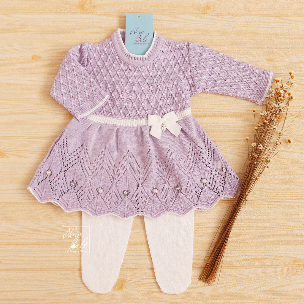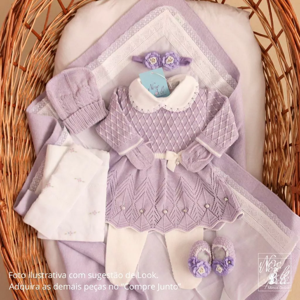 Kit de saída de maternidade feminina com 4 Peças (Vestido, Meia Calça, Body e Manta).