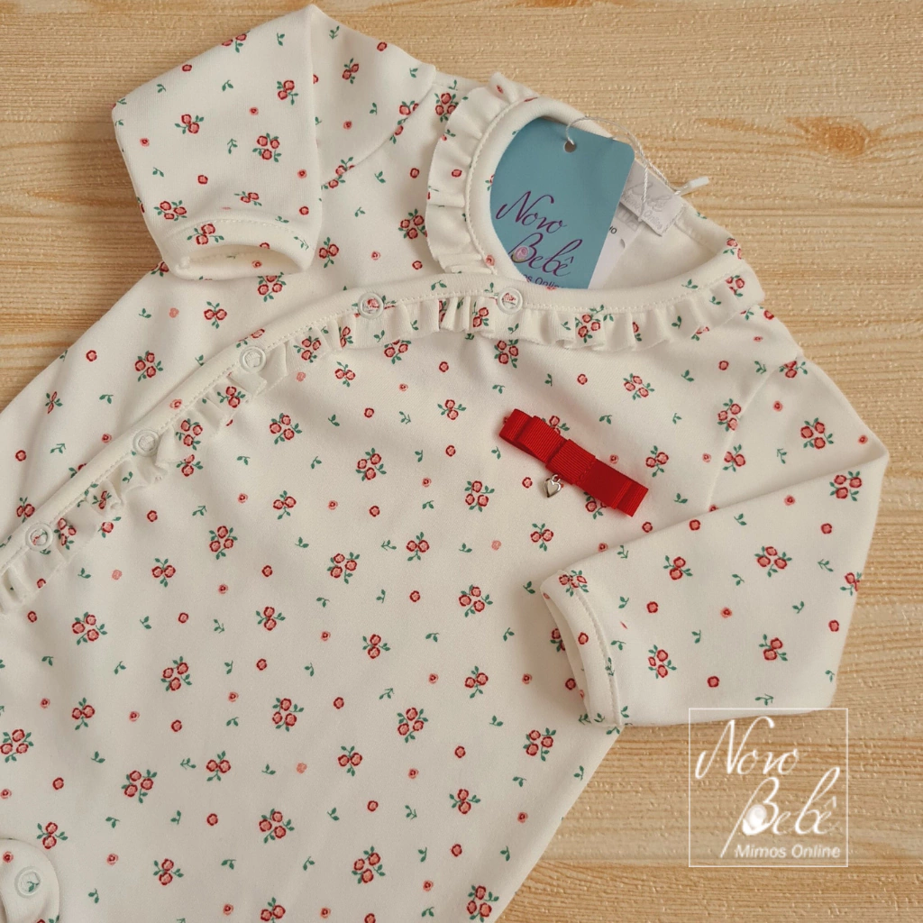 Macacão de bebê menina, em algodão egípcio, um dos dois melhores algodões do mundo. Com toque extremamente suave e macio, perfeito para abraçar a pele do seu bebê nos primeiros meses de vida.