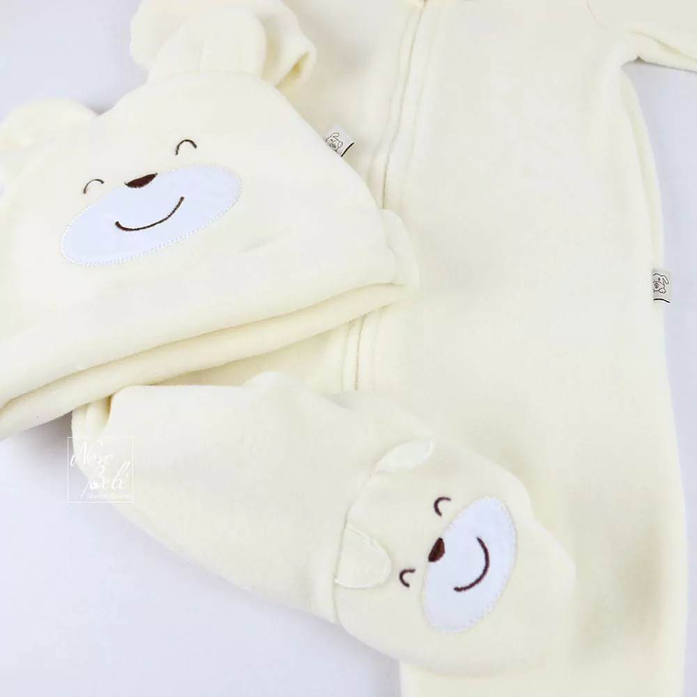 Conjunto unissex com Macacão e Touca em Soft Thermo.
