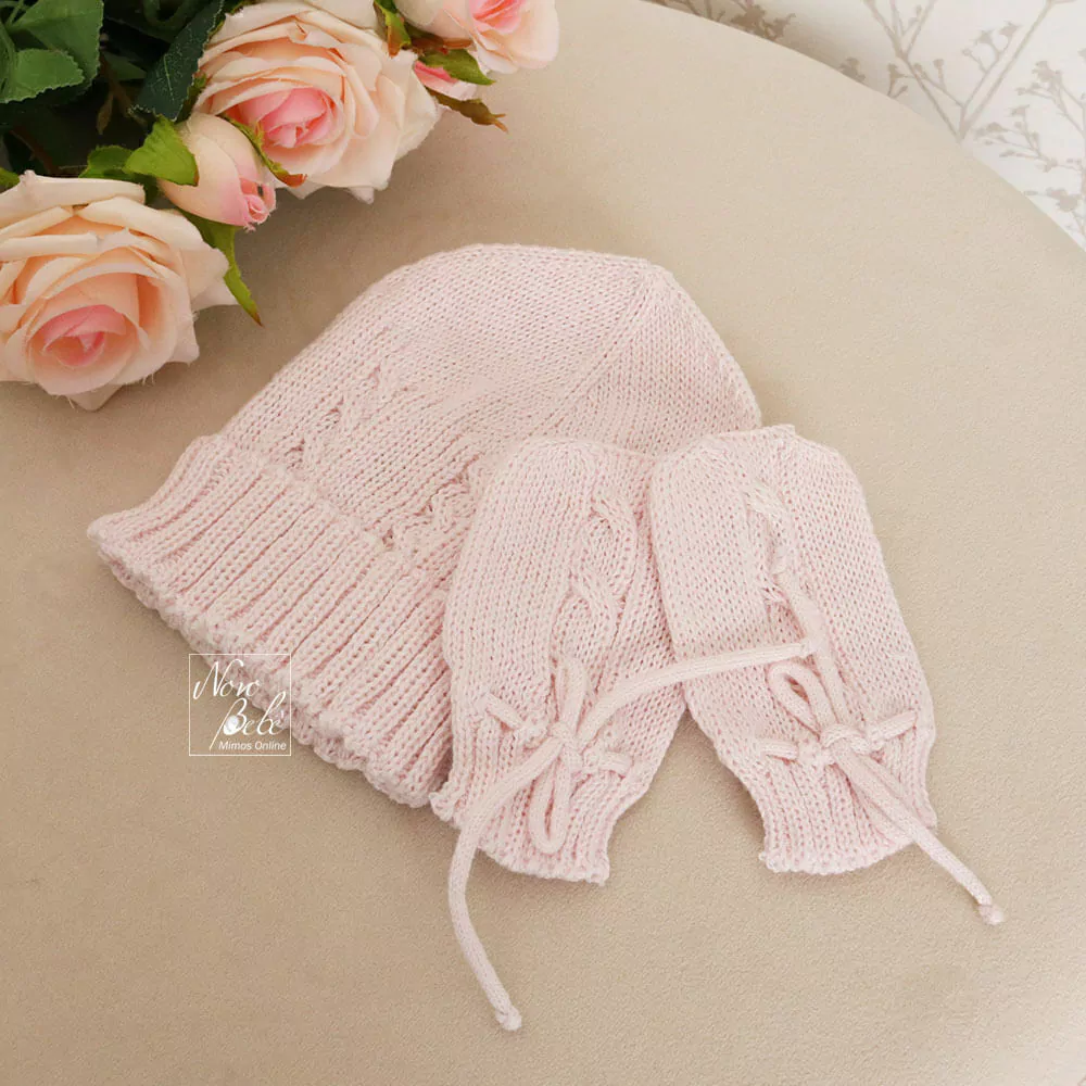 Conjunto quentinho com Touca e par de Luvas em tricot.