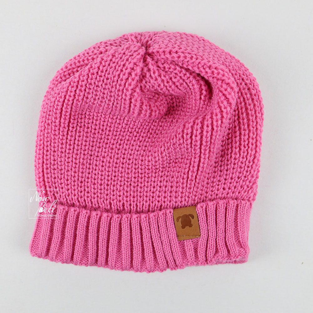 Touca de bebê em trico, 100% Acrílico, com ponto canelado.