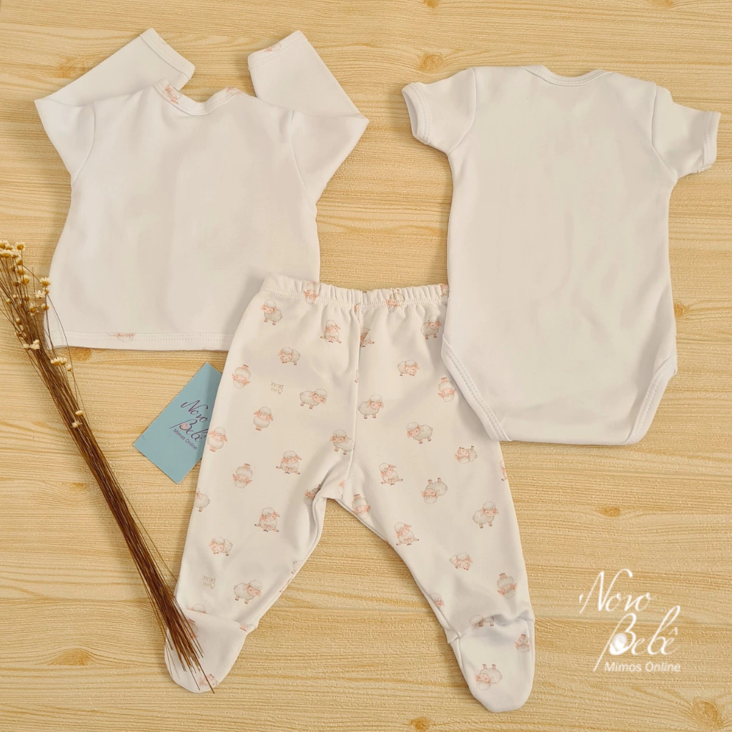 Feita em algodão egípcio de altíssima qualidade, essa roupinha oferece o toque macio e sedoso que a pele sensível do recém-nascido merece. Hipoalergênico, respirável e naturalmente confortável, o algodão egípcio é ideal para compor um enxoval sofisticado, durável e cheio de carinho. Um look perfeito para quem busca o melhor desde o primeiro dia de vida do bebê.